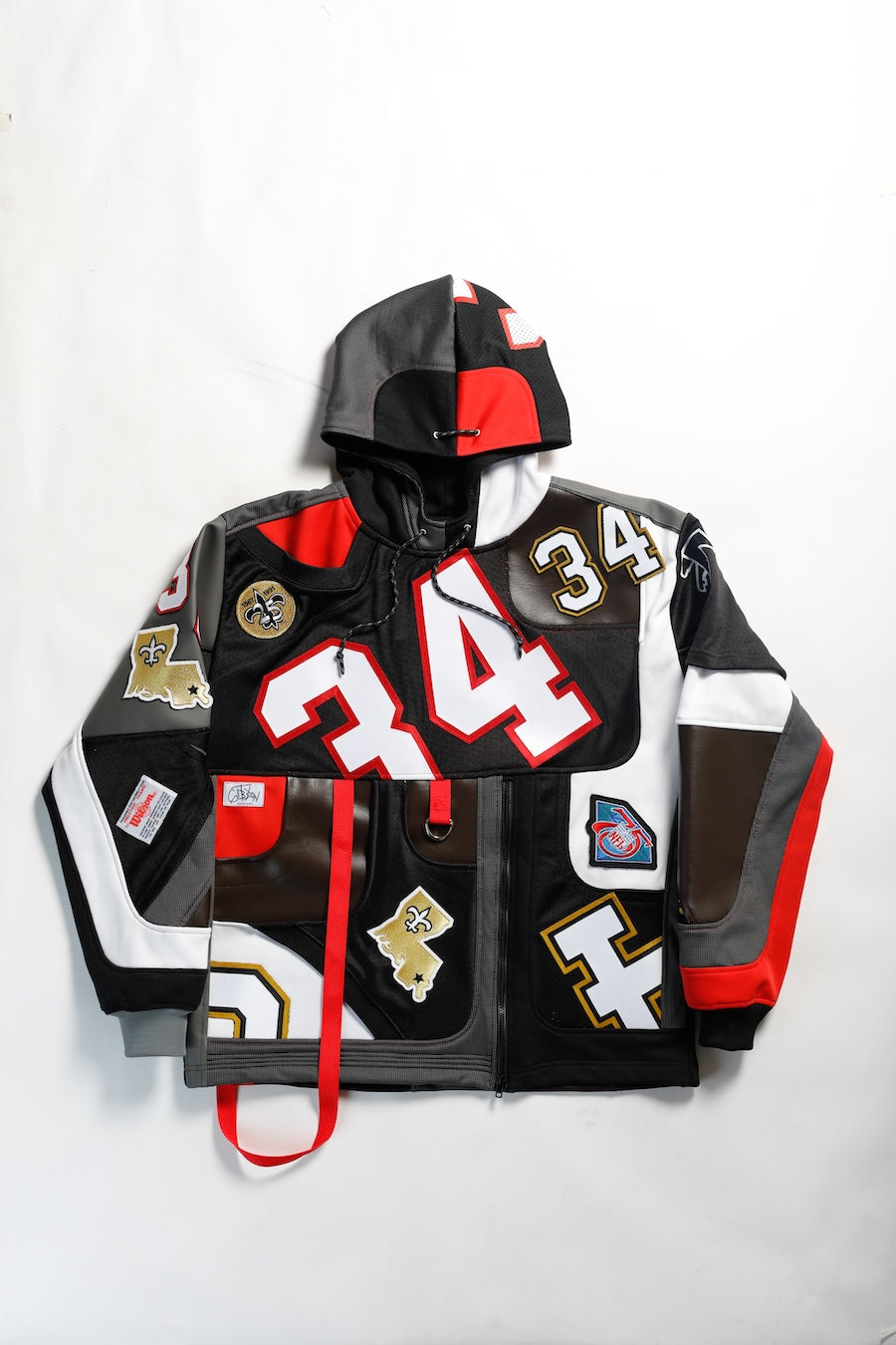 For those ready to take it to the next level, The Pro is where creative collaboration meets couture craftsmanship. Each design begins with a conversation - a shared vision between you and Tyson - and evolves into a one-of-a-kind garment built from multiple jerseys and reworked materials. Specializing in outwear specifically, craft your very own coat, jacket, hoodie, pant, or the like.